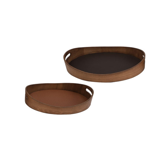 Bandejas em Madeira e Couro Sintético Marrom e Preto M