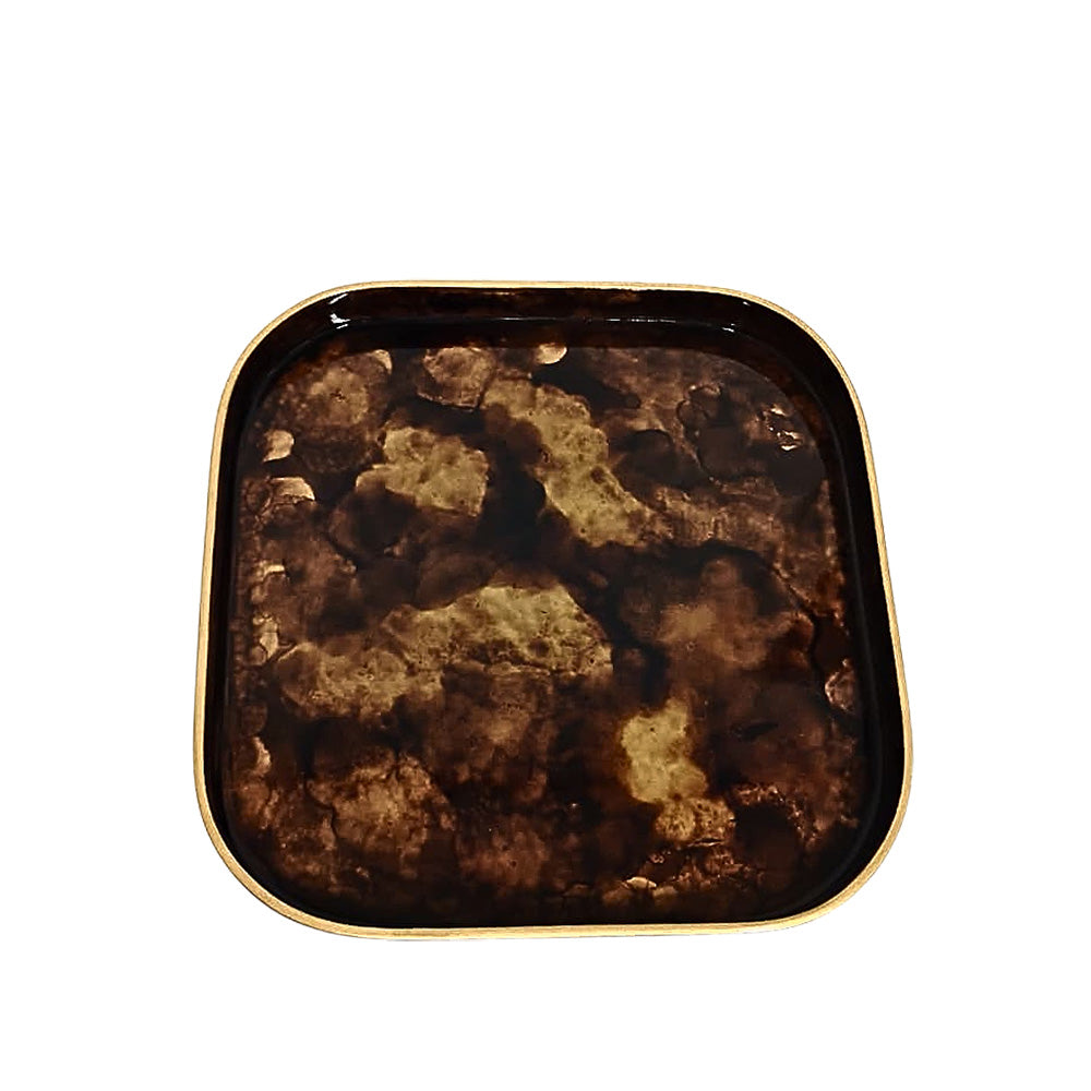 Bandeja Clássica Tortuga M com Pé, em madeira laqueada com acabamento 'tartaruga' em tons terrosos e filete dourado. O design refinado e o brilho elegante do Highgloss tornam a peça ideal para compor aparadores, lavabos ou mesas de centro, acomodando velas, perfumes ou pequenos objetos decorativos.