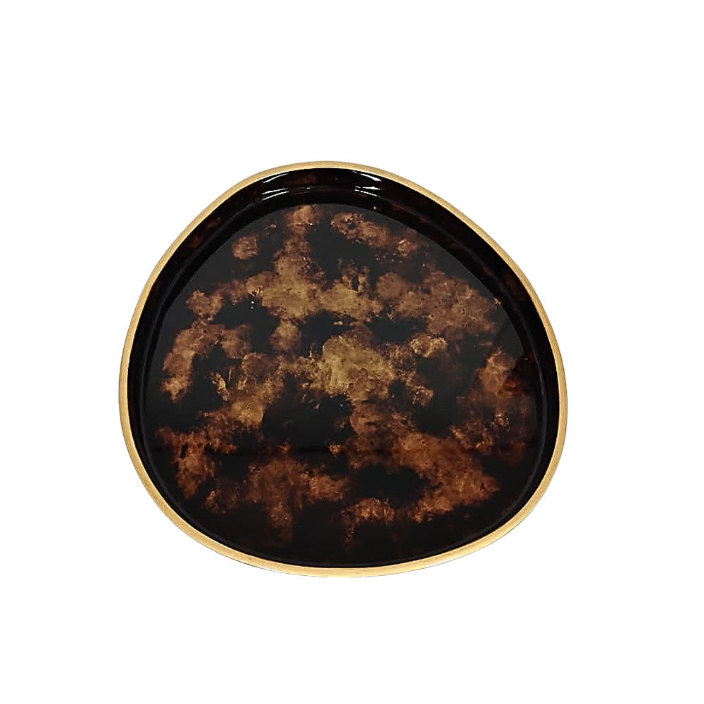 Bandeja Pottery Tortuga em madeira laqueada, com acabamento 'tartaruga" em tons terrosos e brilho Highgloss. Um toque sofisticado e contemporâneo para compor aparadores, lavabos ou mesas de centro.