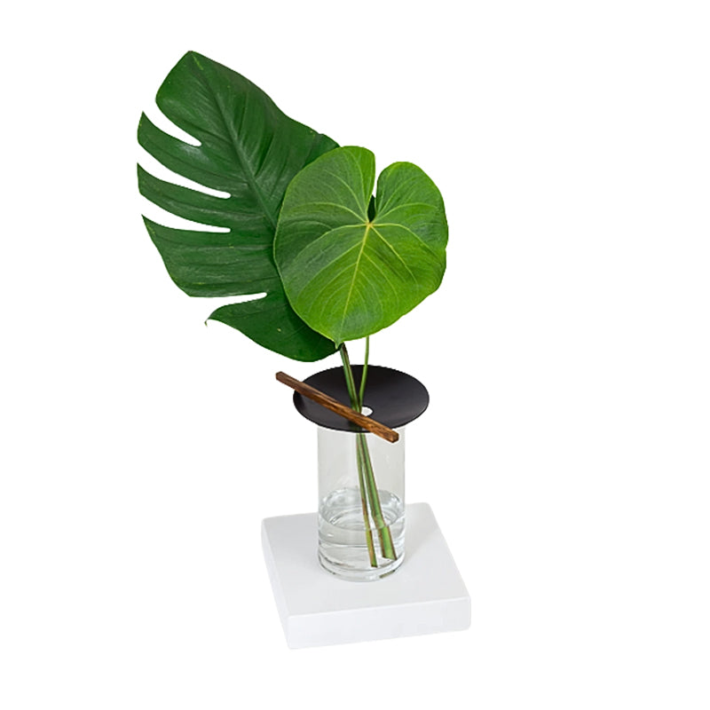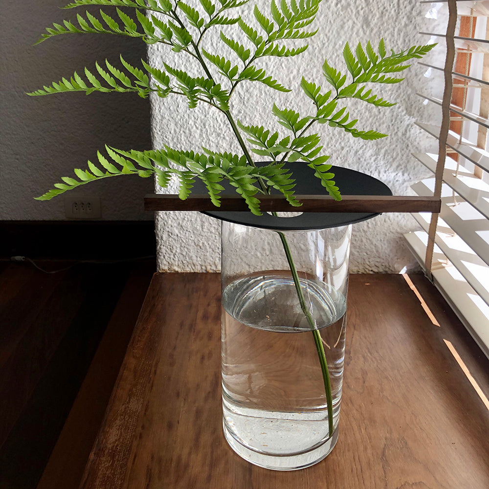 Os desenhos dos vasos se inspiram nas bateias, intrínsecas ao ofício dos garimpeiros. A barra de Imbuia surge como elemento poético. Fixada no topo dos vasos, define dois lados assimétricos, questionado e acentuando essas contradições